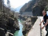 Następnego dnia przyjechał klubowy kolega Domenica – Fabio, który zawiózł mnie na bardzo atrakcyjne miejsce, ale poza strefą „No Kill”. Tam spenetrowaliśmy kilka ciekawszych miejsc, ale niestety ryby w bardzo ostrym słońcu niechętnie żerowały. Fabio stwierdził, że lepiej będzie po południu. Postanowiliśmy pojechać na obiad i przy okazji obejrzeć rzekę w innych miejscach. Przy bardzo smacznej pizzy mój kompan opowiadał o niesamowitych miejscówkach, położonych wyżej w górach, zamieszkiwanych przez potężne pstrągi marmurkowe. Jednak kilkumetrowej głębokości rzeka tworzyła tam przepastny kanion z pionowymi skalnymi ścianami, których wysokość sięgała niekiedy kilkudziesięciu metrów. Nie są to oczywiście miejsca dostępne dla normalnych śmiertelników. Zapuszczają się tam tylko wybitni wędkujący alpiniści, między nimi mój nowy kolega Fabio.