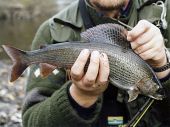 Nie postawiłem swemu przewodnikowi tego pytania, „Profesor Lipień” z Wrocławia znał ten odcinek jak własną kieszeń. W końcu miałem dość. „Pozostanę tu”, meldowałem nieśmiało, pokazując na obiecujące oczka. „Jak chcesz?” bąknał Andrzej i zniknął za krzakami. Odetchnąłem i ostrożnie weszłem do rzeki. Krystaliczna woda przyjemnie chłodzila nawet przez neopreny. Za warkoczami włosiennicy widziałem oczkujące lipienie. Wybór muchy o tej porze roku nie był trudny. Roiła sie Hydropsyche, suchy „Buck Caddis” nr. 14 z sierści sarny był w sam raz. Nie potrwało to długo i holowalem pierwszego lipienia. Wszędzie widziałem oczkujące lipienie, którym po kolei i bez pośpiechu, prezentowałem muchę.