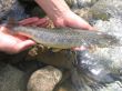 Usiadłem na brzegu i gapiłem się tępo w wodę. I tak bym sobie pewnie siedział długo, bo przecież któż miałby ochotę po takiej podwójnej porażce wciąż moczyć kija, gdyby nie nadzwyczajna, anielska wręcz, przeźroczystość wody. W tejże wodzie dostrzegłem cień ryby. Chwile wcześniej tam nic nie było, wiec to musiała być ta ryba zza skały. Wstąpił we mnie nowy duch. Na klęczkach podszedłem najbliżej jak się da i zarzuciłem muchy. Potem wykonałem drugi rzut, i następny. Muchy płynęły tuz obok ryby, a ta nie reagowała. Po kilkunastu rzutach zmieniłem przynęty, ale nic to nie pomogło. Wtedy zrezygnowany wstałem. Wyprostowałem nogi narażając się na zdemaskowanie. I choć na branie ryby nie miałem już nadziei, to jednak dalej uparcie rzucałem jej muchy przed nos. Słońce śmiało już wędrowało po nieboskłonie. Robiło się coraz cieplej. Po kolejnym, nie wiadomo którym rzucie, stało się jednak to, czego się już nie spodziewałem. Delikatny ruch ryby w bok i mucha znikła w paszczy. Cięcie i siedzi!!! Radość jednak malała proporcjonalnie do czasu trwania holu. Po 2-3 minutach ryba była już w ręce. Okazała się nią niemiarowa głowatka. Nie była mała, ale jednak znacznie krótsza niż to się pierwotnie wydawało. Taka drobna pociecha na otarcie łez, po utracie owej ogromnej srebrnej ryby.