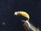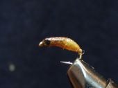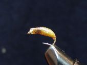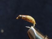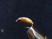 Po wnikliwej analizie postanowiłem skręcić imitację takiego stadium. Chociaż z pewnością nie jest to forma stanowiąca zasadnicze pożywienia dla ryb , ze względu na małą dostępność ( kokon jest na stałe przytwierdzony do podłoża) to w pewnym okresie może okazać się naprawdę skuteczna .