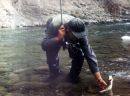 Ładna mi drobnica. Teraz widzę pod drugim brzegiem liczne wyjścia. Jest ich sporo. On też je widzi. Zaczęła roić się dość duża biała jętka, ale na razie z tego co widzę, wyjścia są do zupełnie innej muchy.