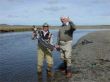 Zawsze liczymy na sukces, ale to zależy od wielu spraw, czy jesteś doświadczonym wędkarzem czy nie, i.t.p. Bywa czasami ze pierwsze dwa dni nie którzy wędkarze nie maja ani jednej ryby na koncie. Na pierwszej "zbiórce" informacyjnej, którą mam z klientami tuż po ich wylądowaniu tutaj, przemawiam do nich a żeby się nie martwili, jeżeli pierwszego albo drugiego dnia nic nie złowią. Rzeka jest łatwa ale kompletnie inna od innych znanych przez nich rzek. Muszą tutaj się poduczyć sporo nowych rzeczy. Pod koniec tygodnia przeważnie wszyscy dociągają do normalnych cyfr, ze 20 pstrągów z przeciętną wagą 5 kilos.
