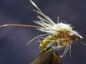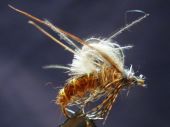 Po całkowitym spłynięciu zestawu spokojnie trzymamy much w miejscu I czekamy na ewentualne branie. Jeśli nic się nie dzieje ściągamy muchy bardzo powoli o około metr I znów chwilę zostawiamy je nieruchomo (przytrzymywanym muchom można nadać trochę życia wykonując niewielkie ruchy szczytówką, czasem to działa). Ten manewr możemy wykonać dwa, trzy razy po czym wykonujemy kolejny rzut. Zawsze staramy się rzucać I poprawiać muchy w miejscach, gdzie widzieliśmy wyjścia ryb. Opisywany wyżej sposób łowienia ma zastosowanie gdy łowimy w dość silnym prądzie, który pomaga napiąć zestaw. W miejscach o słabym uciągu branie nie będzie już tak wyraźne, nie można też liczyć na samozacięcie się ryby. W miejscach o słabym uciągu metoda „na Pupę” nie jest najlepsza. Brak silnego uciągu utrudnia właściwe prowadzenie muchy. W momencie gdy na odcinku wody o słabym uciągu zauważymy żerowanie ryb na wylatujących chruścikach, można spróbować łowić na pupy ale trochę inaczej. Rzut wykonujemy pod prąd, w okolicę zauważonych oczek. Zaraz po opadnięciu przyponu na wodę kładziemy kij poziomo I zaczynamy ściągać linkę jak przy łowieniu na streamera, starając się aby muchy płynęły z szybkością możliwie jak najbardziej zbliżoną do prędkości wody. Tak jak w sytuacji opisywanej wcześniej nie zacinamy wędziskiem. Zacięcie następuje, gdy ryba zawraca z muchą w pysku, a ręka podciąga linkę – to zupełnie wystarcza. Specyfika opisywanej metody nie pozwala na stosowanie. Cienkich przyponów, nie ma zresztą takiej potrzeby – żyłka0,16 nie będzie w cale za gruba.