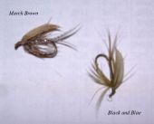 jakieś fantazyjne lekkie nimfki w odcieniach szarości i brązów wszystko to na hakach 16-20, dorzućmy do tego parę mokrych March Brown, Coachman-ów, no i parę puchowczyków w zdecydowanych kolorach.
