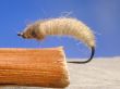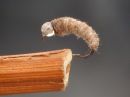 Wtedy nawijam tułów muchy „na okrętkę” . Oczywiście haczyk nimfy wcześniej został owinięty drutem ołowianym, a na drucie położyłem owijkę z nici o neutralnym kolorze,