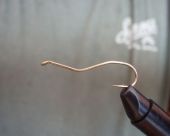 Osobiście gnę haczyk w imadełku, najpierw na 1/3 długości od oczka, a następnie tuż przy kolanku.