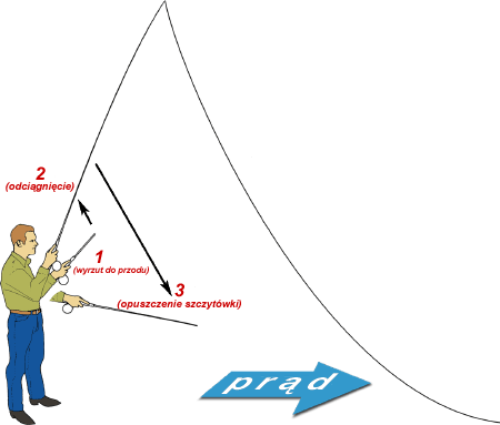 Rezultatem poprawnie wykonanej operacji będzie linka luźno zwisająca z podniesionej szczytówki. Mucha po "wylądowaniu" powinna znajdować się powyżej stanowiska ryby.