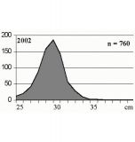 |  |  Rozkłady długości lipieni łowionych podczas Zawodów o Puchar Dunajca im. Romaniszyna w 2002 r.
