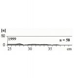 Zawody o Puchar Dunajca od 1999 roku organizowane są na tzw. „żywej rybie”. Wymiar ochronny ustalany był zwykle na 25 cm. Dokonano analizy kart startowych z tego okresu. Wynik przedstawiony jest na rysunku. Widać z niego, że w 1999 r. połowy lipieni były tylko nieco lepsze (58 ryb) od tegorocznych.