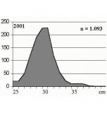 |  |  Rozkłady długości lipieni łowionych podczas Zawodów o Puchar Dunajca im. Romaniszyna w 2001 r