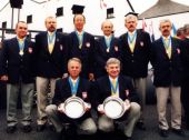 |  |  Druzyna Polska przed otwarciem zawodow,od lewejstoja:Marek Walczyl,Jozef Lach,Lukasz Ostafin,Piotr Konieczny,Antoni Tondera,Jan Obrzut(trener),Andrzej Persz(kierownik druzyny),Kazimierz Szymala.