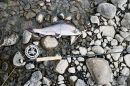 4. Zwraca uwagę dobre żerowanie powierzchniowe lipieni jesienią. W październiku 2002 r. mimo fatalnych warunków pogodowych na wodzie było mnóstwo wylatujących jętek Baetis. Zresztą tak intensywnego wylotu tych jętek już dawno nie widziałem w naszych rzekach. W wielu miejscach lipienie przebywały przy samym brzegu na prawie stojącej wodzie, zwłaszcza jeśli tam była rynienka i od czasu do czasu zgarniały jętki. Do suchej wychodziły również lipienie z głębokiej (około 2 m) wody.