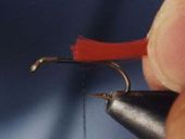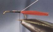Przytwierdzenie pęczku wełny lub jedwabiu na ogonek muchy