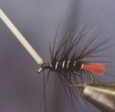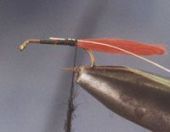 Na przykładzie tej muchy możemy zobaczyć prawidłowy sposób nawijania palmera tz od uszka haczyka do grota. Dzięki takiemu nawinięciu promienie nie załamują się. Nawijanie palmera w odwrotnym kierunku stosuje się raczej tylko w przypadku much łososiowych.