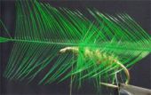 Teraz przystępujemy do nawijania jeżynki. Za każdym zwojem przytrzymujemy pióro i układamy je w odpowiednim kierunku. Jak widać jeżynka położona w ten sposób "leży". Następnie zakańczamy muchę nicią wiodącą. I palmer z dwoma jeżynkami gotowy.