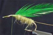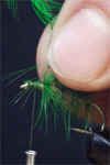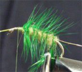 Jeśli spotkamy w literaturze stwierdzenie "Palmered" to zwykle odnosi się ono do sposobu kładzenia jeżynki który prezentujemy, czyli zaczynająć od uszka a kończąc w pobliżu grota. Po nawinięciu jeżynki przystępujemy do nawinięcia przewijki, którą nawijamy w odwrotnym kierunku niż jeżynką. Tak nawinięty Palmer jest praktycznie niezniszczalny. Podobnie jak w musze Phesent Tail to przewijka trzyma całą konsrukcję palmera. W zasadzie na tym można by skończyć wykonanie tej muchy, jednak w celu zaprezentowania przwidłowego sposobu położenia jeżynki w wypadku mokrej muchy czy niektórych łososiowych nawiniemy jeszcze jedną jeżynkę.