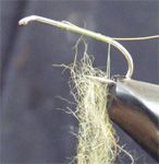 Rozpoczęcie wiązania muchy jak zwykle rozpoczynamy od przywiązania nici wiodącej.