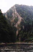 Nurt wpada niejako z dwóch stron- tworząc trójkąt wolniejszej wody- poniżej sporo większych kamieni z rynnami pomiędzy nimi - niżej powoli się ujednolica. Po około 300 m następny optyczny próg -sporo "