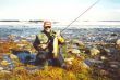 Nazajutrz spotykamy się również na przelewie. Niestety ,w nocy wiatr zmienił kierunek i brania ucięło jak nożem .Łowimy ze dwie godziny i Sigi mówi że lepiej iść napić się gorzołki ,bo to łowienie nie ma sensu. Co też niezwłocznie czynimy. Ogólnie z rybami była bryndza. I jakościowo i ilościowo, ale dla tych paru godzin łowienia w piekle huczacych fal , warto było. Łowienie na muchę w morzu to zupełnie coś innego niż łowienie w jeziorze czy rzece. Niesamowite wrażenia , totalny żywioł, obłęd, szaleństwo, zgroza, wścieklizna !!!!!!!! Tego się po prostu nie da opisać słowami. Kurde, następnym razem pojadę tam w dobrym czasie : w kwietniu lub maju. To będzie orgazm !!!!!